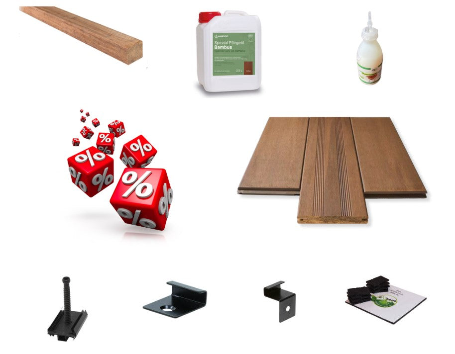 Hergestellt aus thermisch behandeltem Bambus – einem besonders schnell nachwachsenden und ökologischen Rohstoff – sind die Materialien extrem formstabil, witterungsbeständig und langlebig. Durchdachte Komponenten erleichtern den Aufbau – ideal für Heimwerker und Profis. Dieses Set kombiniert natürliche Eleganz mit langlebiger Funktionalität und ist perfekt geeignet für Terrasse, Balkon oder Garten. Es bietet Ihnen ein Rundum-Sorglos-Paket für den Terrassenbau mit allem, was Sie brauchen – direkt in einem Set.