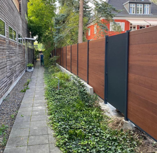 Das Bambus Zaunsystem Acapulco ist individuell gestaltbar. Lockern Sie Ihren Sicht- und Windschutzzaun mit dieser HPL-Füllung auf (Artikel ohne Pfosten und Halter).