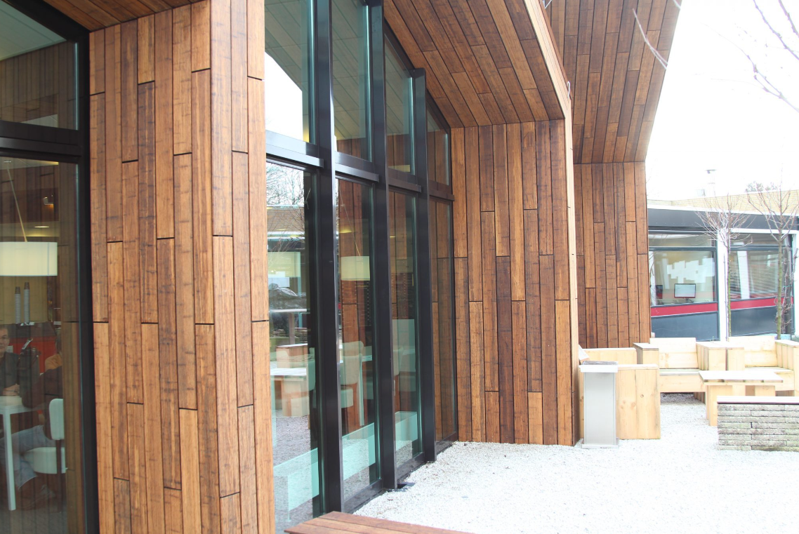 Die Bambusfassade ist widerstandsfähig und langlebig.