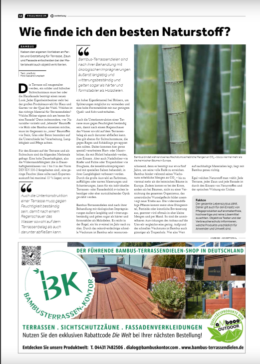 In der aktuellen Mai Ausgabe dreht sich alles um "nachhaltiges Bauen". Das Thema Bambus darf da natürlich nicht fehlen.
